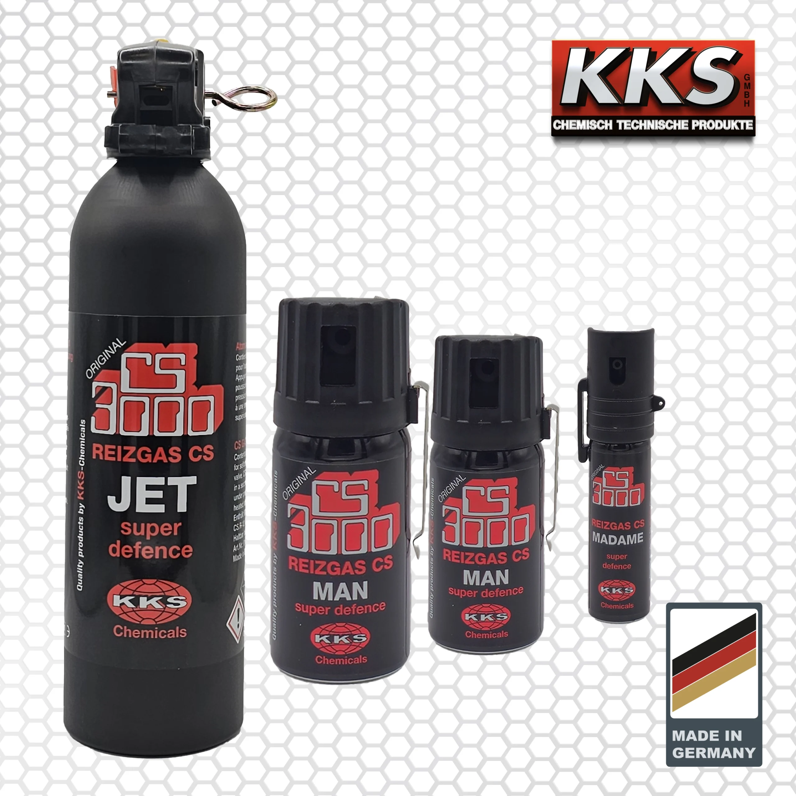 HDie CS 3000 Serie von KKS bietet leistungsstarke Tränengassprays zur effektiven Personenabwehr, basierend auf dem Reizstoff 2-Chlorbenzylidenmalonsäuredinitril (CS). Mit einem Wirkstoffgehalt von 0,3 % sind alle Sprays dieser Serie optimal dosiert. Entwickelt für den privaten und semi-professionellen Einsatz, kombinieren sie fortschrittliche Technik mit höchster Benutzerfreundlichkeit. Eine federunterstützte Deckelkappe und ein robuster Clip gewährleisten sichere Handhabung und einfache Aufbewahrung. Dank ihrer kompakten Bauweise sind diese Sprays leicht zu transportieren und bieten in jeder Lage schnellen, verlässlichen Schutz.